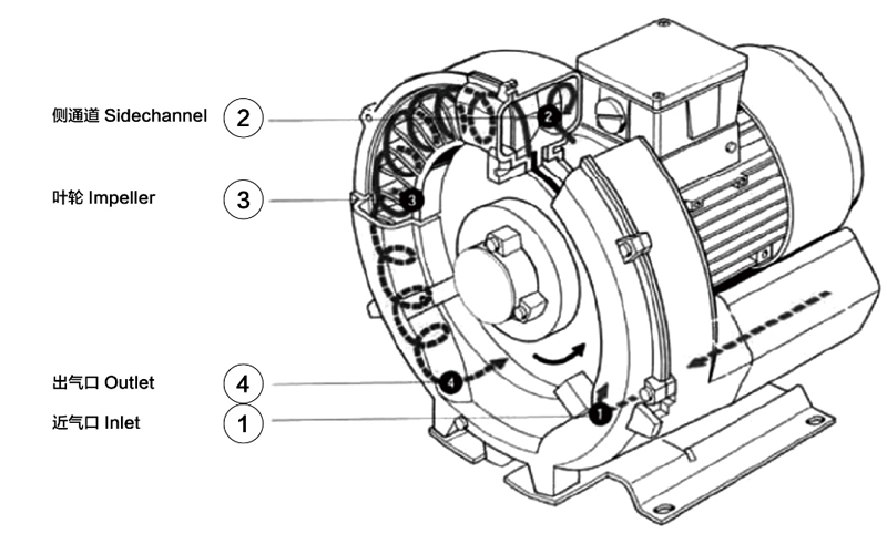 4.欧冠德系环形高压鼓风机转子与转子、转子与机体之间的间隙小,大大加强了风的压力。